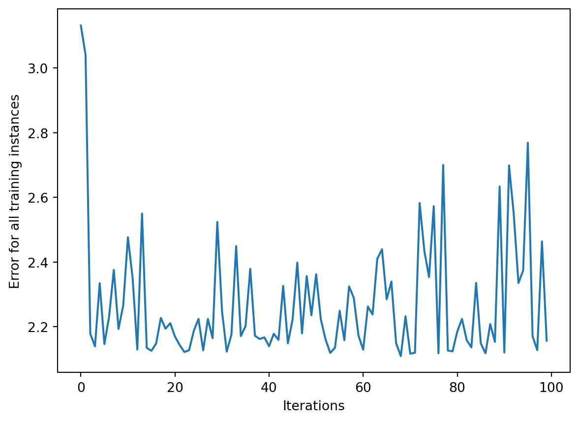 We conclude by training our NN using the entire data set and 10000 iterations. We produce a final plot showing the error for all training instances.